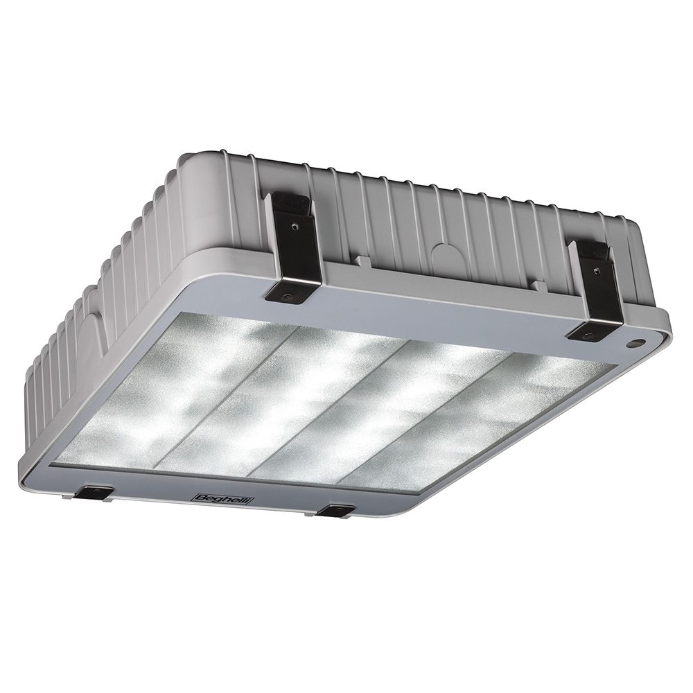 A louvre that combines versatility, sturdiness and superlative technical lighting features, conceived for large structures with elevated installation heights. The triple possibility of light diffusion makes this a complete product in an industrial setting, solving the most varied lighting problems thanks to optics of the latest generation that focus on efficiency and glare control. The small dimensions of the housing allow the easy passage of overhead cranes or other internal moving stuctures: there are no mounting limits.