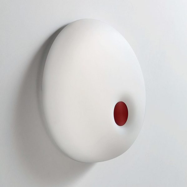 Unit to wall or ceiling diffuse light designed for fluorescent lamp T5c 22W or complete high efficiency LED module. Made of lacquered steel powder epoxy-polyester, UV-stabilized and provided with diffuser in satin-finish polyethylene that allows for smooth and discrete emission of light. The unit comes complete with electronic ballast or driver and knob in anodized aluminum available in gray, black and red. The degree of protection against ingress of dust, solid and liquid matter is IP40.