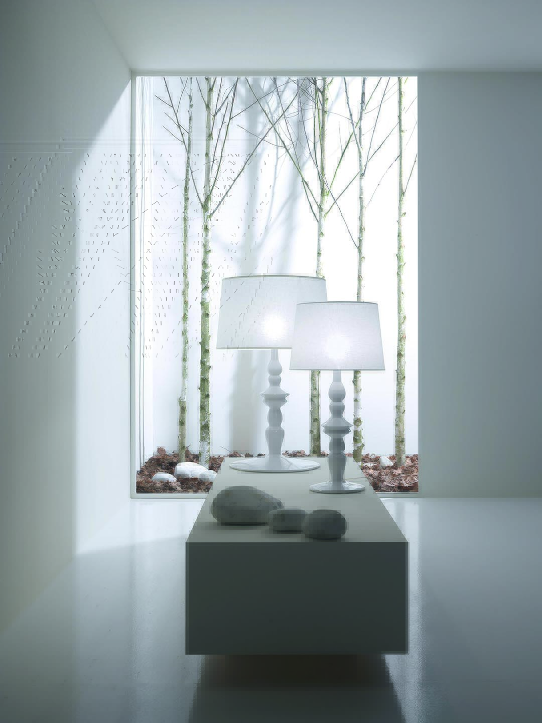 "Inspired for name and profile to oriental fairy tales of One thousand and One nights, Ali & Babà is the richest in Karman’s collection for dimensions and both declination, all of them having though the same temper. As if the speech “Light Up, Sesame” could become a wish, besides illusion. (In white glossy ceramic, can be either equipped with linen lampshade… for a softer and diffused lighting)."