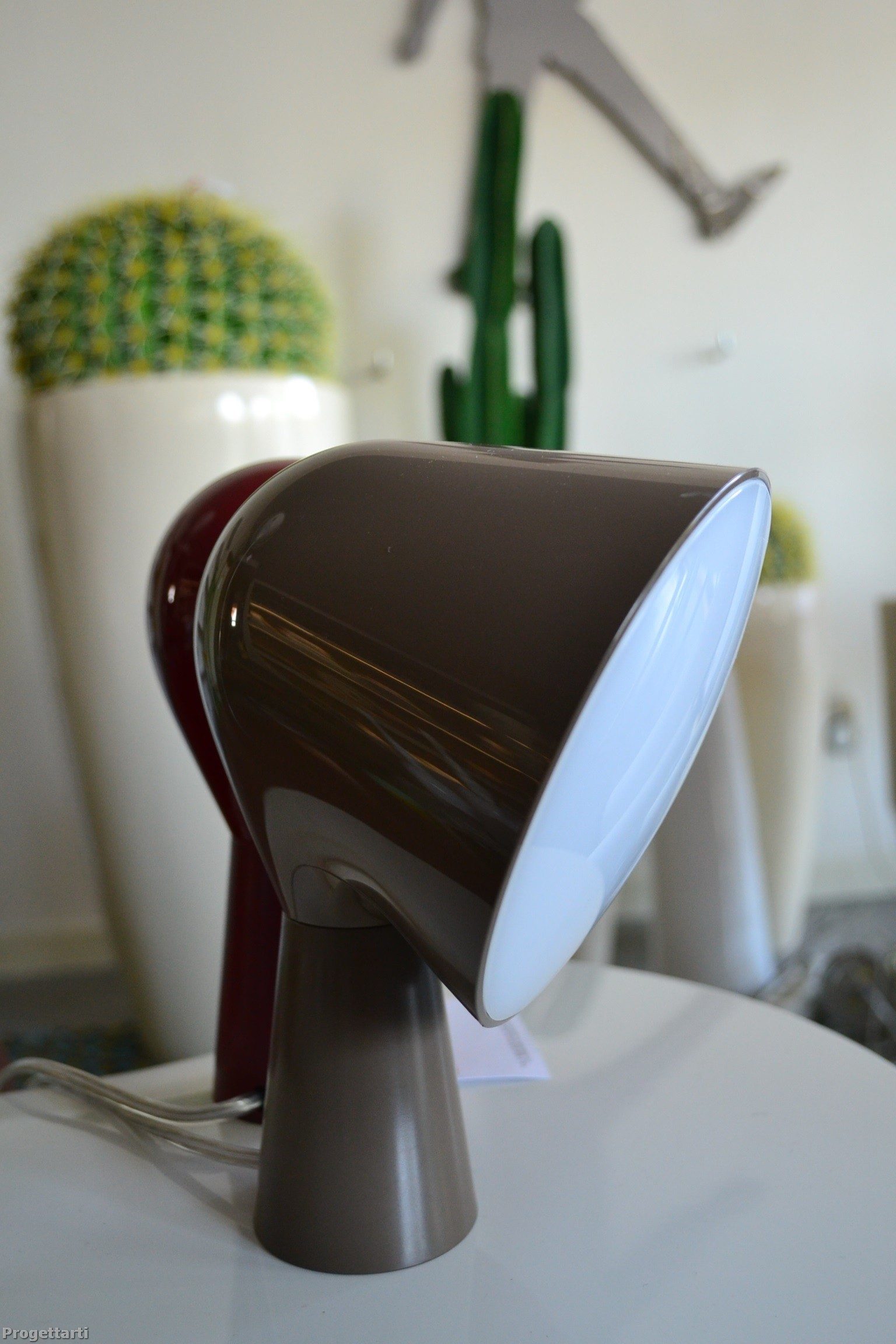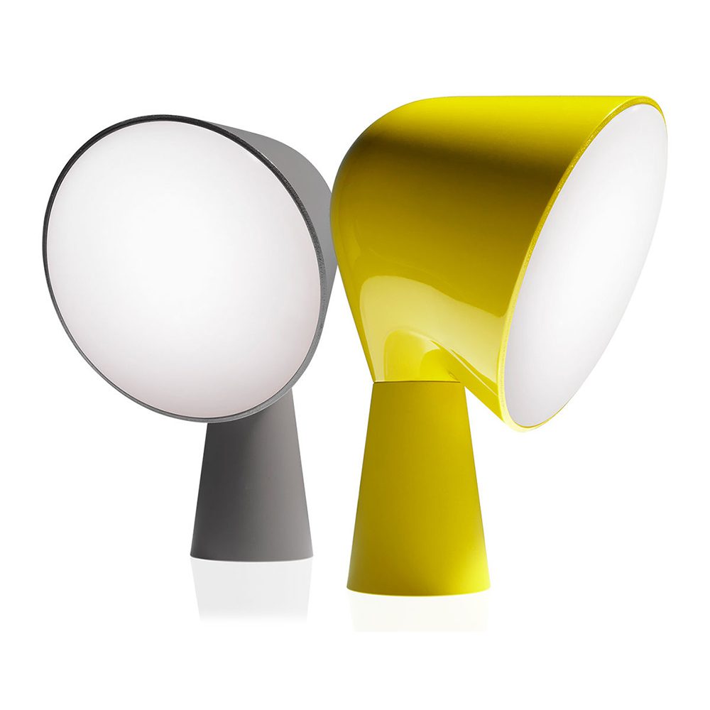 "Table lamp with ABS base and polycarbonate projector. Available in six different colours, Binic is suggested as a “take away” object - a present."