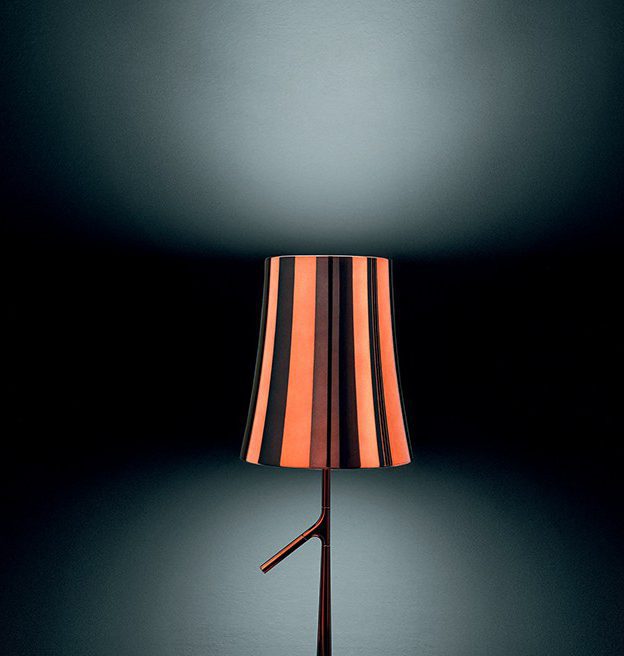 "The slim stem recalls the trunk of a tree, its shade is a reinterpretation of the classic reading lamp, while the branch, as if ready for a “birdie” to alight, beckons your touch, turning it on or off. These three elements spontaneously coalesce to give life to a friendly lamp, that combines a smooth and familiar structure with a boldly character. Made with sturdy yet lightweight materials, Birdie has a different personality, depending on the colour: in white, it can be discreet and almost invisible, but in amaranth, orange or grey it becomes more of a prima donna capable playing the starring role of a room. Always monochromatic, from lampshade to the base for a decisive character without compromises. There are two dimensions available for the table lamp, designed to blend in easily with the surroundings. Whether beside an armchair or a sofa in the living room, on the desk in a study, on a bedside table, or in any other room of the house, Birdie fits naturally in and accompanies everyday life with a pleasantly stylish presence."