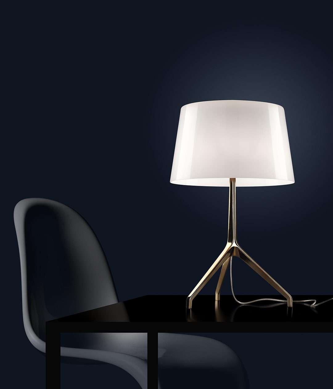 "It was back in 1990 when the designer Rodolfo Dordoni presented Foscarini with the proposal for a refined, elegant and creative reinterpretation of the classic beside lamp. From that meeting, Lumiere was born. The first Lumiere went on to inspire the XXL and XXS versions, a reinterpretation of the original project. Today, Lumiere XXL and XXS have been revamped, with modern colours in conjunction with new brushed aluminium or black chrome finishes for the frame The new Lumiere XXL reading lamp is instead an expression of entirely new research in terms of proportions, size and aesthetic language"