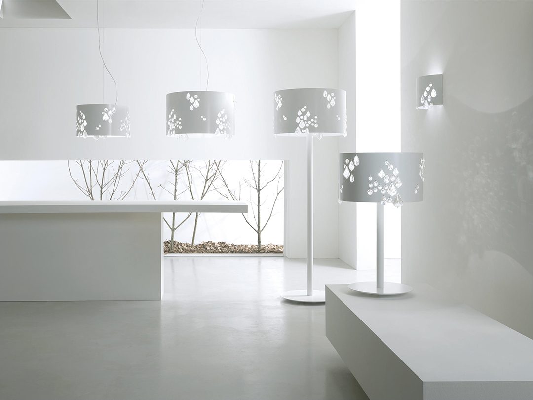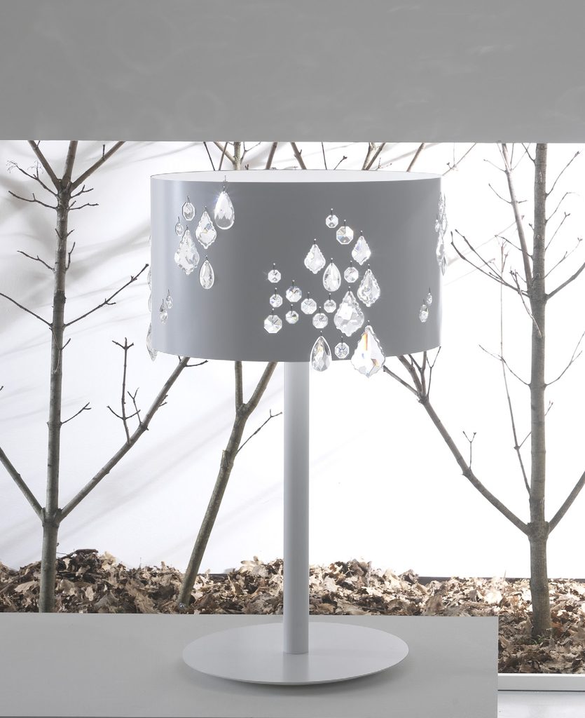 Materials Structure in white lacquered metal, lampshade with set crystals