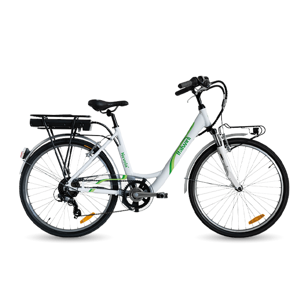 If you want to move in the city effortlessly, with the convenience of stopping at any time without compromising your stability, Nuvola4 with 24” tires is your e-bike. A pedal assist bicycle particularly light and very versatile, thanks to the possibility to mount a front basket. The down tube guarantees security at stops and traffic lights as you can rest your foot entirely on the pavement. A detail to remember is the suspended fork, that makes Nuvola4 a complete electric city bike.