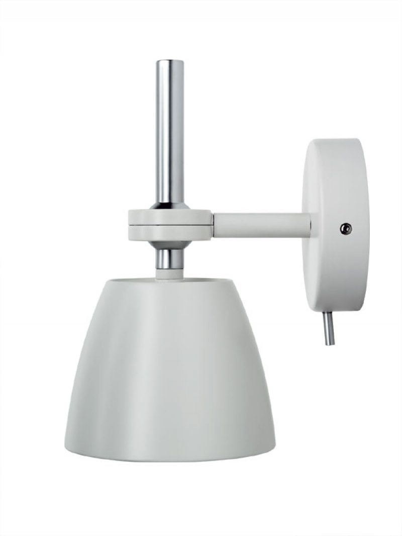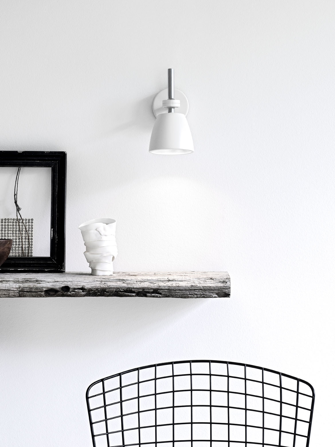 Adjustable lighting is central to the design and construction of the Takeru wall lamp. The lamp is created around a pointed light source and a reflector that ensures maximum illumination. Takeru consists of a shade, a handle, a ball joint and two bushings. The specially-designed bushings allow smooth and flexible adjustment of the light. A reflector is also mounted in the shade that directs and diffuses the light. The switch is discreetly placed at the bottom of the wall base.